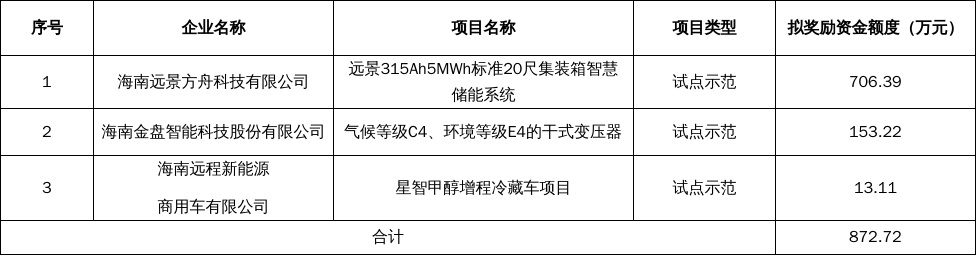 ????依據(jù)《海南省人民政府辦公廳關(guān)于印發(fā)海南省促進(jìn)經(jīng)濟(jì)高質(zhì)量發(fā)展若干財(cái)政措施的通知》(瓊府辦〔2021〕65號(hào))和《海南省工業(yè)和信息化廳?海南省財(cái)政廳印發(fā)〈海南省先進(jìn)裝備制造首臺(tái)套獎(jiǎng)勵(lì)資金管理實(shí)施細(xì)則〉的通知》(瓊工信規(guī)〔2022〕2號(hào))有關(guān)要求,我廳啟動(dòng)2025年度海南省先進(jìn)裝備制造首臺(tái)套項(xiàng)目申報(bào)工作,同步開展2025年度海南省先進(jìn)裝備制造首臺(tái)套第三批試點(diǎn)示范類項(xiàng)目驗(yàn)收工作,擬對(duì)“遠(yuǎn)景315Ah5MWh標(biāo)準(zhǔn)20尺集裝箱智慧儲(chǔ)能系統(tǒng)”等3個(gè)項(xiàng)目進(jìn)行獎(jiǎng)勵(lì)(見附件),現(xiàn)予以公示,公示期自2025年12月17日至12月23日。
